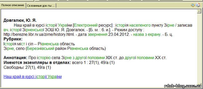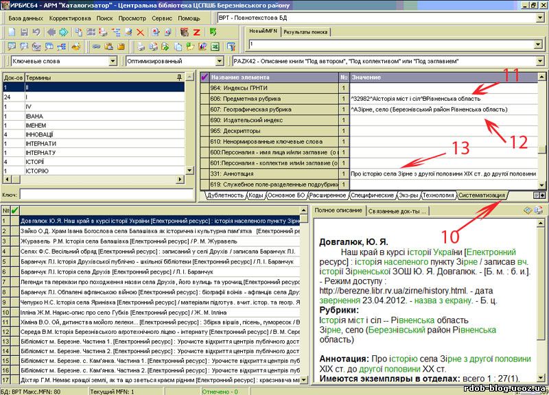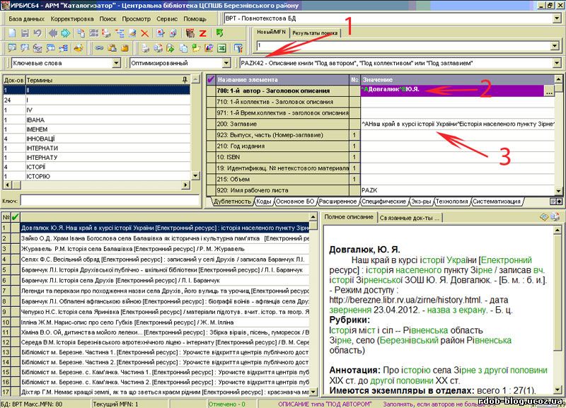 Шановні колеги!! На ваші прохання опубліковано інструкцію " Аналітична обробка електронних ресурсів мережі Інтернет в Абіс ІРБІС" ВІд себе особисто, даруйте, та і від Вашого імені щиро дякую Тетяні Поліщук з Березнівської ЦРБ за детальну консультацію. А втім, Ви маєте нагоду самі тут сказати слова вдячності, висловити свою думку і звісно задати запитання, якщо вони виникнуть.
